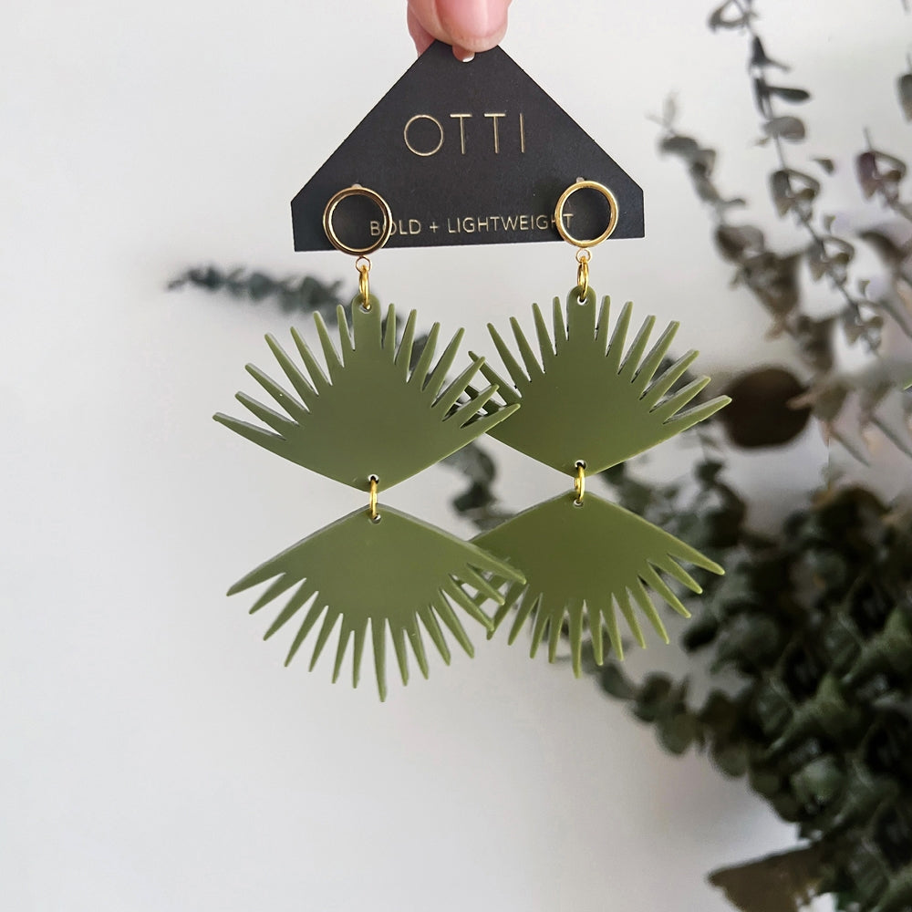 Nickel free/lead free posts. All acrylic elements designed and cut in-house and are unique to OTTI earring designs (not a pre-purchased component or template)
